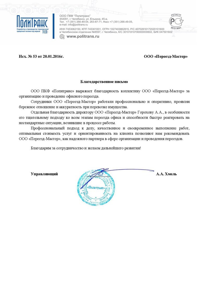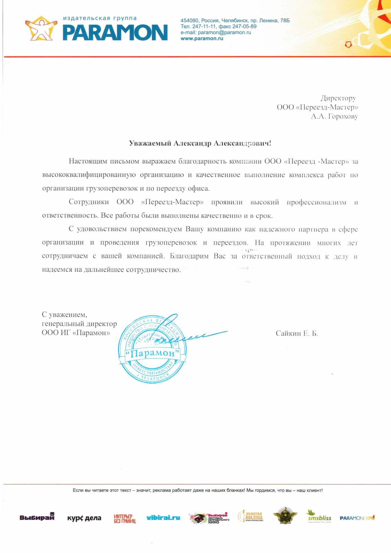 Благодарственные письма наших клиентов говорят о нашем профессионализме,